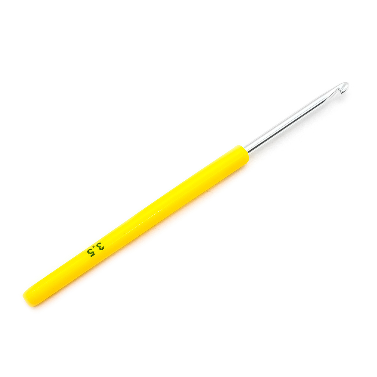 Универсальный крючок для вязания порадует рукодельниц своим удобством. Крючок изготовлен из практичного металла с удобной пластиковой ручкой, идеально подходит для работы с пряжей средней толщины, различного состава, для вязания ажурных и кружевных узоров. Гладкий металлический стержень и головка классической формы позволяют вывязывать аккуратные петли и формировать правильный узор. Крючок легкий и компактный, его удобно брать с собой в поездку, чтобы наслаждаться любимым делом где угодно. Размер крючка: 3,5 мм.