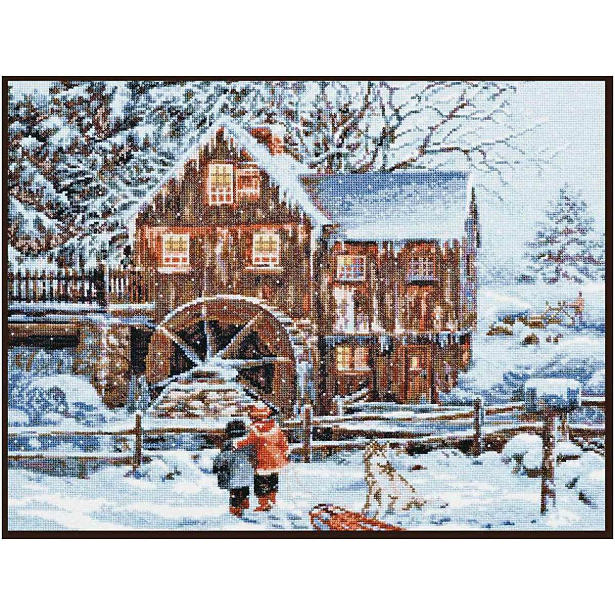 Набор для вышивания крестом Палитра, Мельница в снегу, 40*31 см арт. 07.013