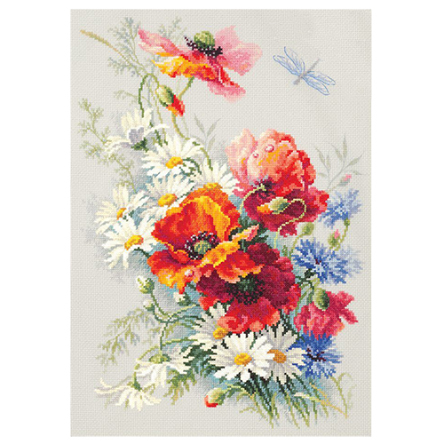 Набор для вышивания крестом Чудесная игла, Маки и ромашки 28*39см арт. 100-061