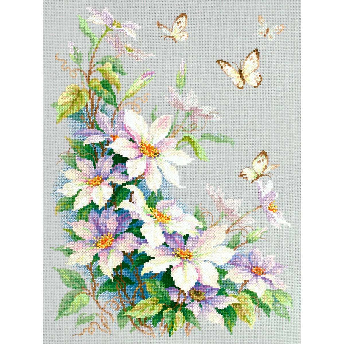 Набор для вышивания крестом Чудесная игла, Клематисы 28*39см арт. 100-062
