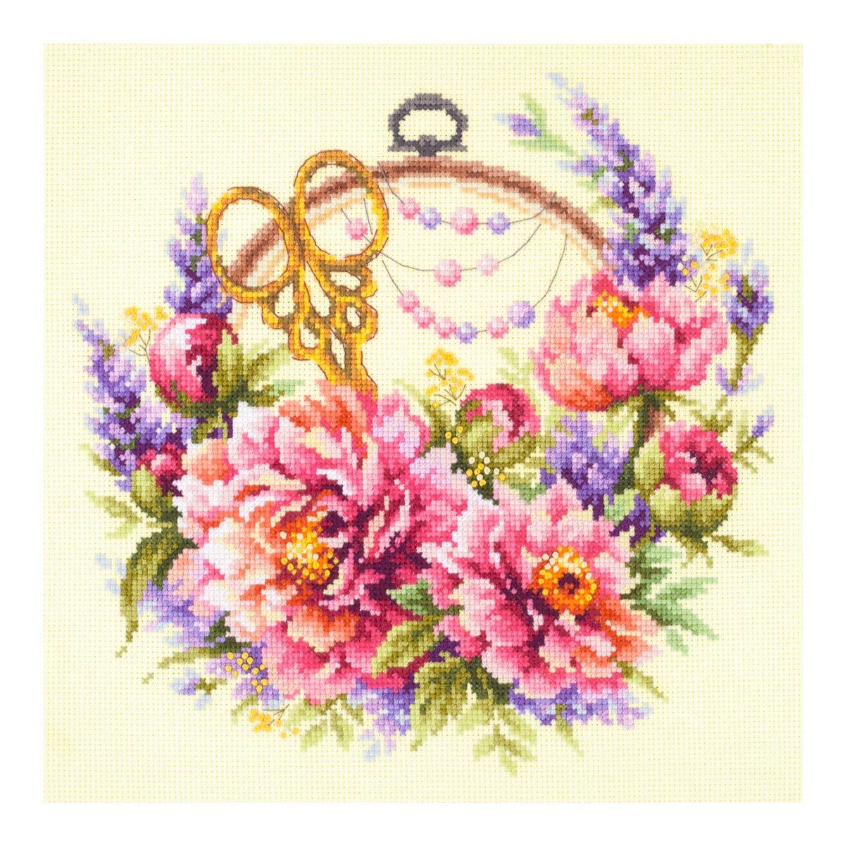 Набор для вышивания крестом Чудесная игла, Пионы для умелицы 25*25см арт. 100-124