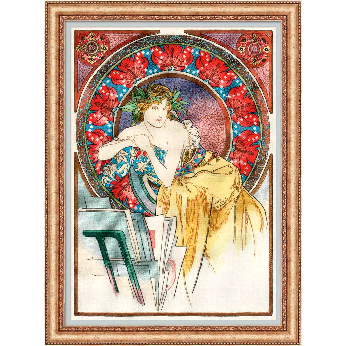 Набор для вышивания крестом Риолис, Девушка с мольбертом по мотивам произведения А. Мухи28*40 см арт. 100/058