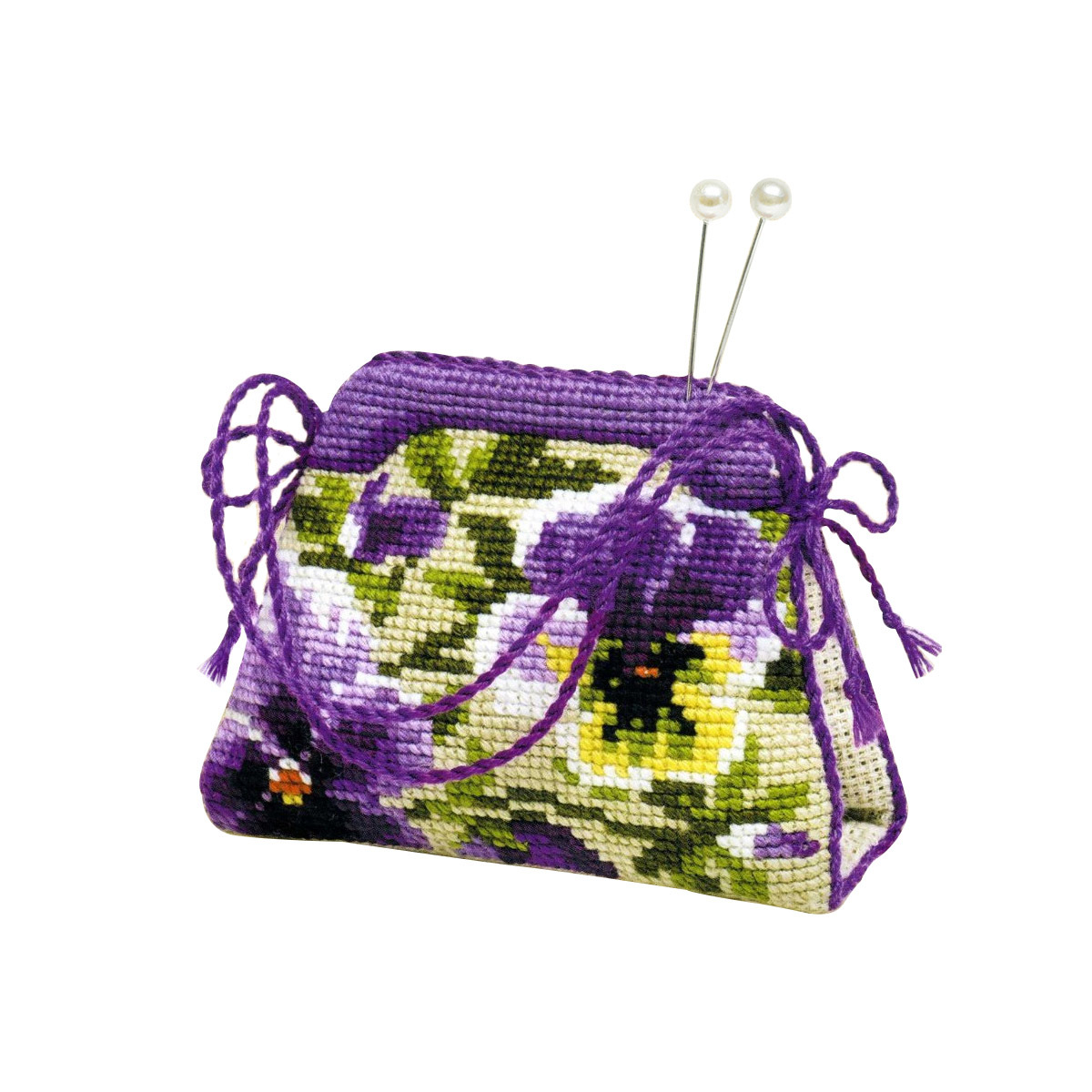 Набор для вышивания крестом Риолис, Игольница-сумочка Анютины глазки, 11*8 см арт. 1039