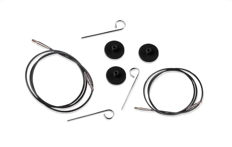 Тросики (лески) изготовлены из упругого и гибкого материала, который обеспечивает гладкое соединение без перегибов и скручиваний. Длинное соединение с резьбой гарантирует гладкое и прочное соединение лески и спицы. Для затягивания соединения предназначен небольшой ключик, который вставляется в специальное отверстие и затягивается для прочного соединения. Торцевые заглушки легко надеваются на леску и обеспечивают безопасность вязания. Упаковка: Набор из 1 лески, 2 торцевых заглушек и 1 ключа
