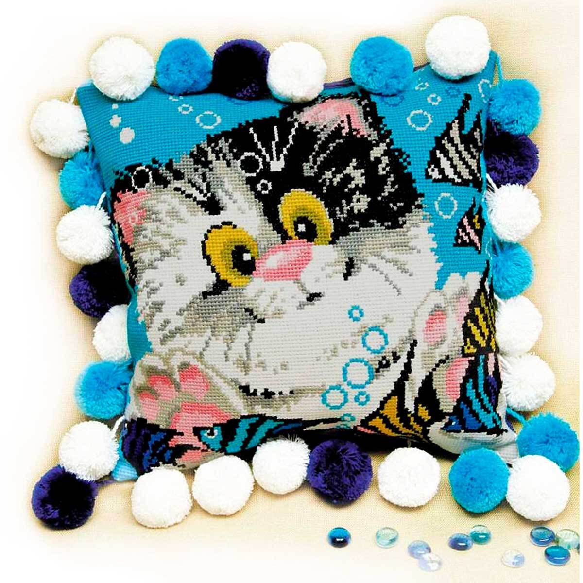 Набор для вышивания крестом Риолис, Подушка Котенок, 30*30 см арт. 1100