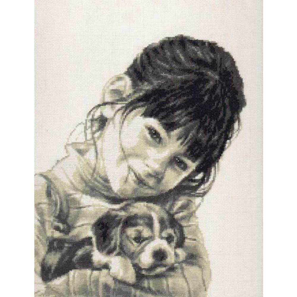 Набор для вышивания крестом Палитра, Девочка со щенком, 26х31 см арт. 11.003