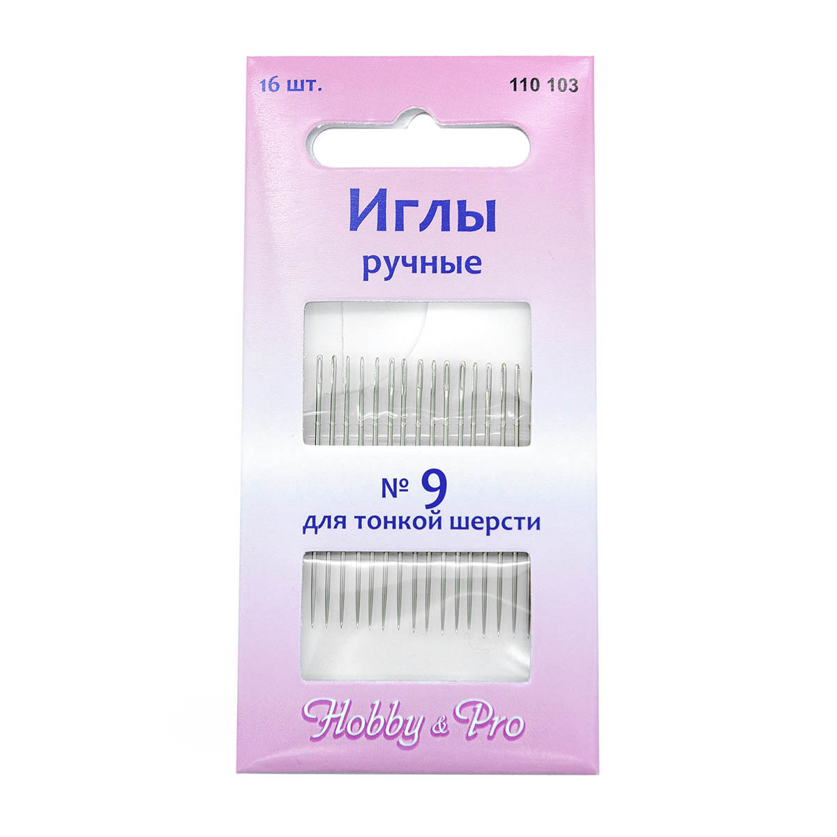 Иглы ручные вышивальные для тонкой шерсти №9, 16 игл, Hobby&Pro, 110103
