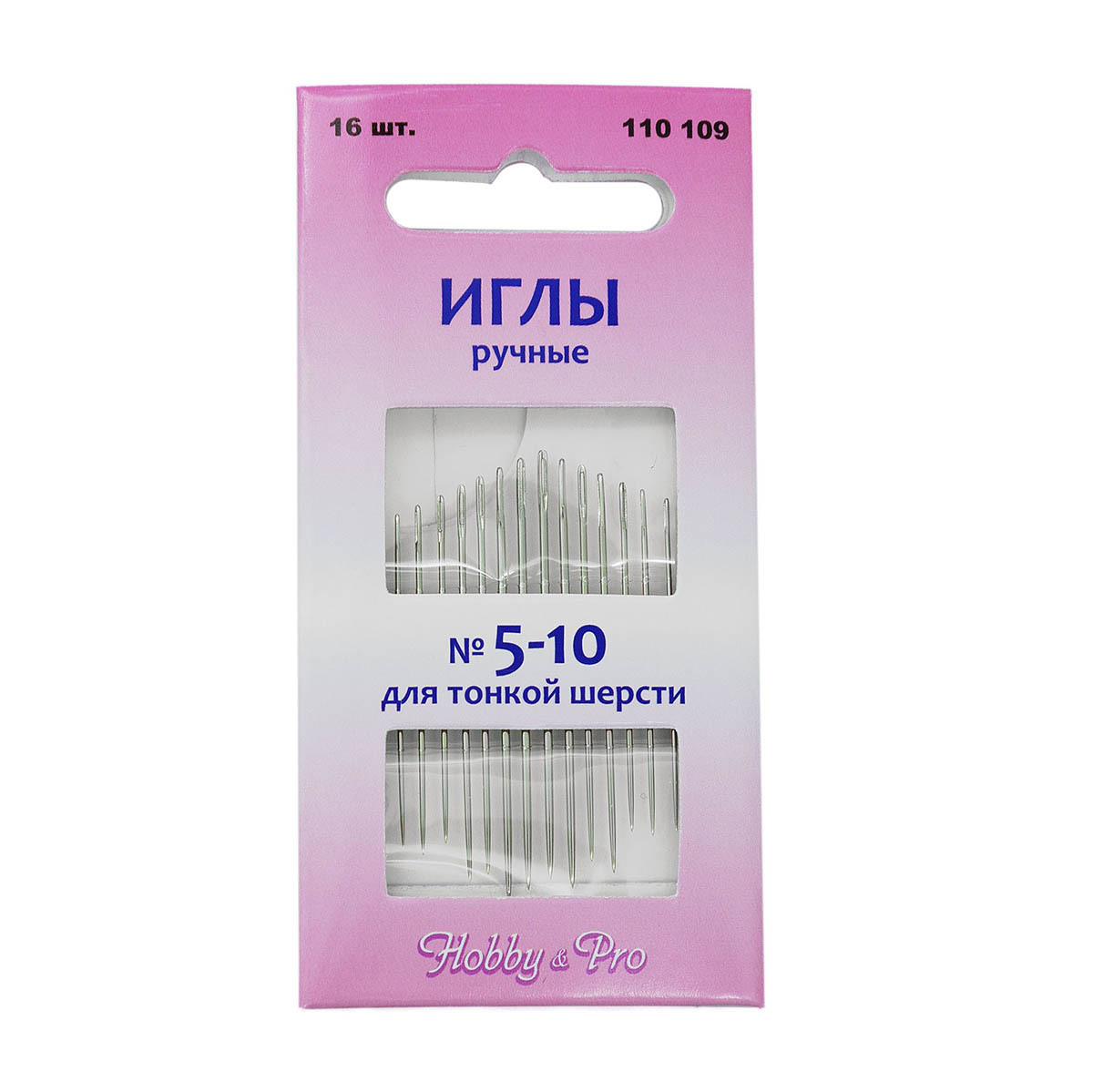 Иглы ручные вышивальные для тонкой шерсти №5-10, 16 игл, Hobby&Pro, 110109