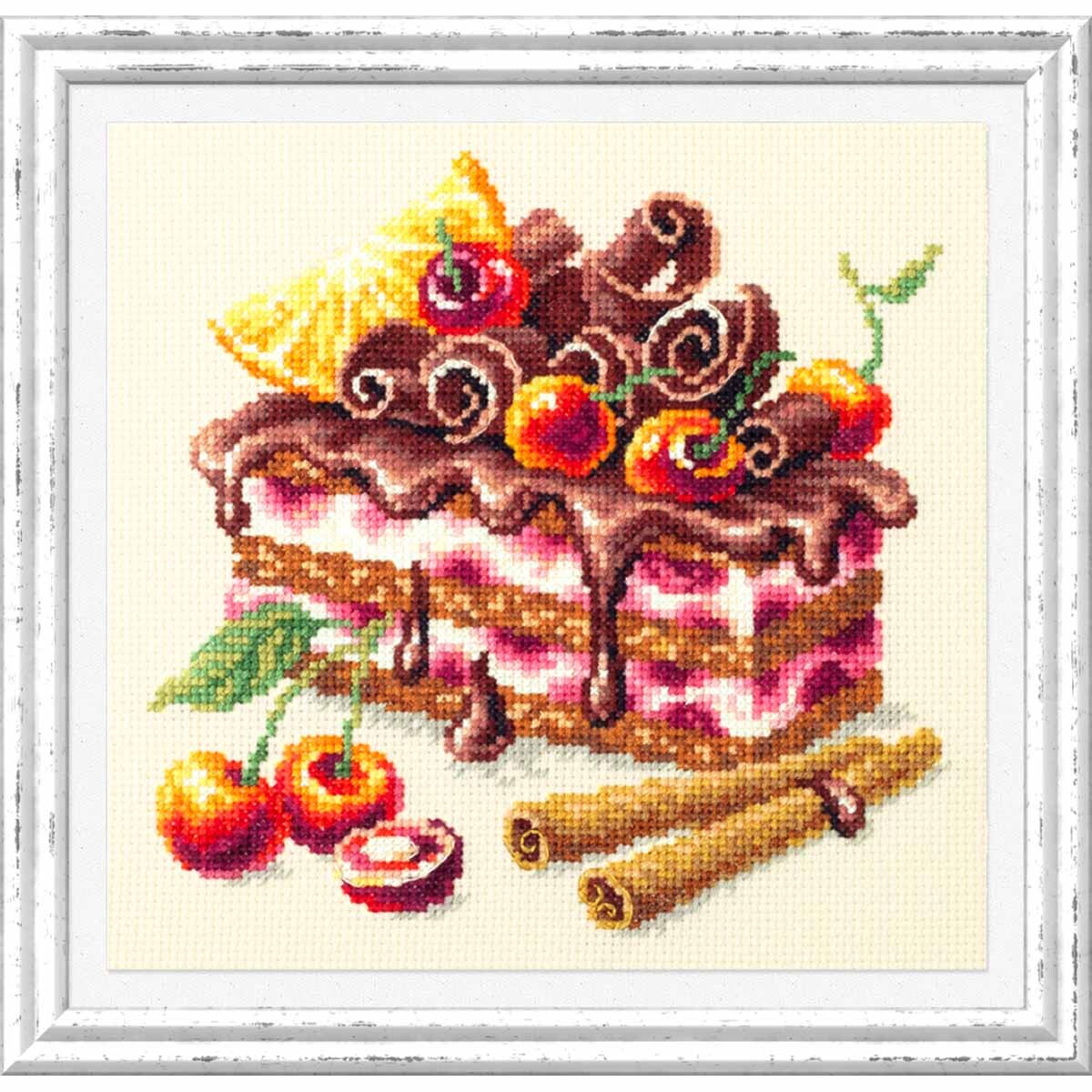 Набор для вышивания крестом Чудесная игла, Вишневый торт 17х17см арт. 120-072