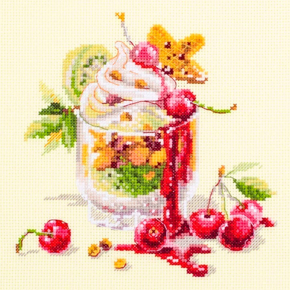 Набор для вышивания нитками Чудесная игла, Вишневый десерт