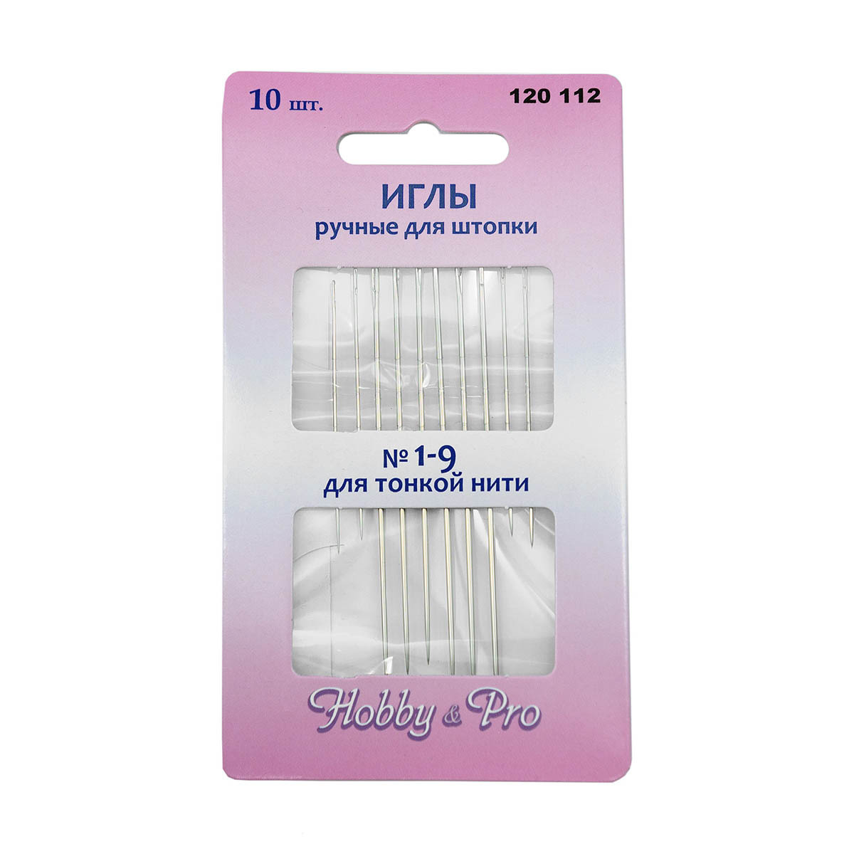 Иглы ручные для штопки тонкой нитью №1-9, 10 игл, Hobby&Pro, 120112