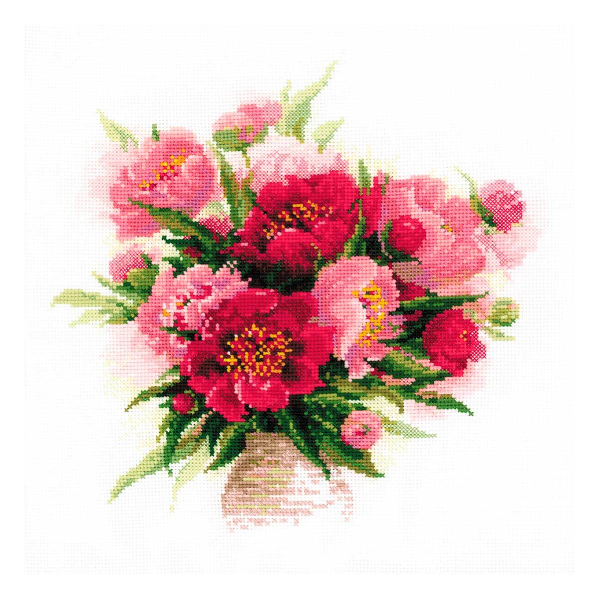 Набор для вышивания крестом Риолис, Пионы в вазе, 40*40 см арт. 1259