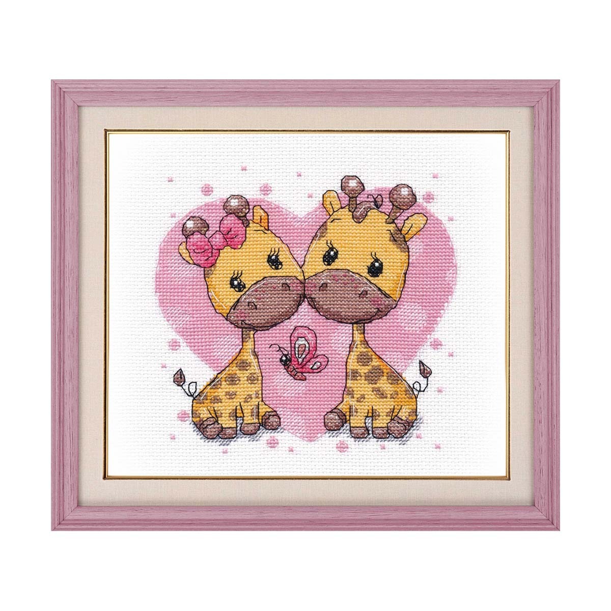 Набор для вышивания нитками Овен, Влюбленные жирафики 15х15см