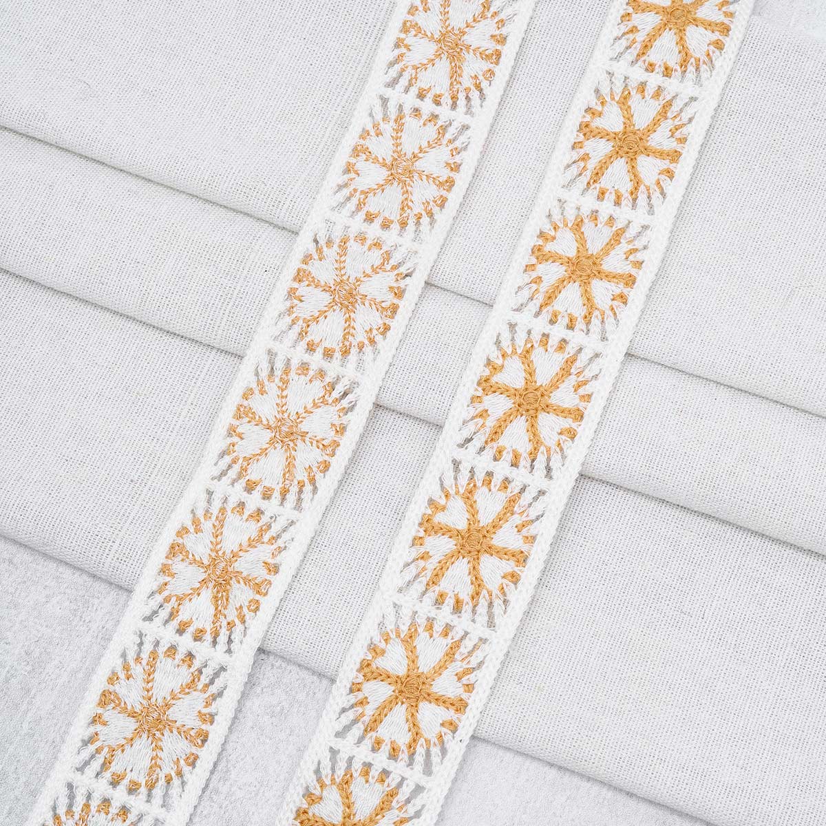 Тесьма декоративная вязаная бабушкин квадрат 35 мм / 9.14 метра, белый/бежевый, 129N-018a