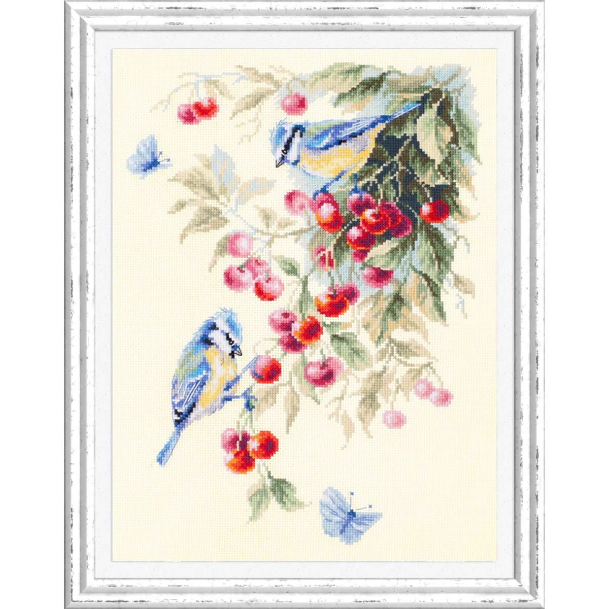 Набор для вышивания крестом Чудесная игла, Синицы и вишня 25х35см арт. 130-021