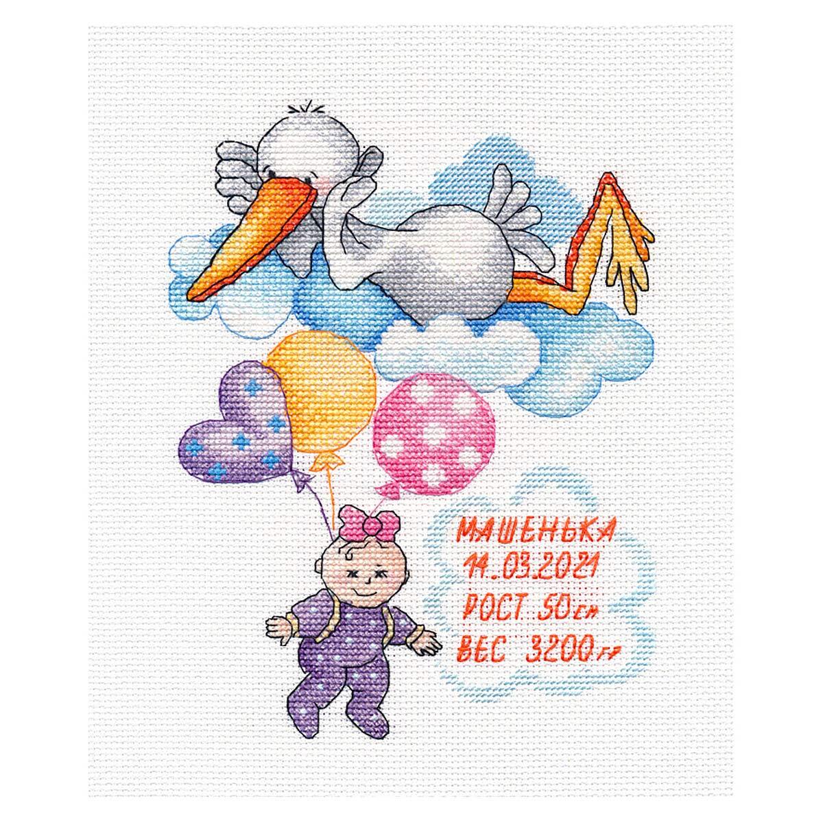 Набор для вышивания крестом Овен, Метрика. Машенька 15*20см арт. 1413
