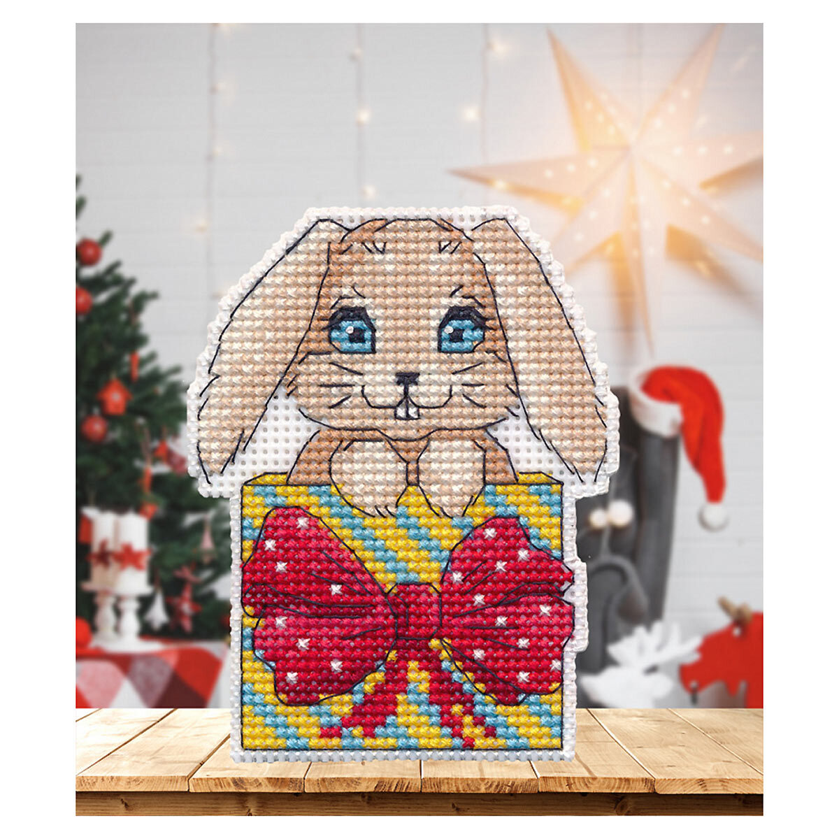 Набор для вышивания нитками Овен, магнит на пластиковой канве Пушистый подарок 6.7х8.7 см