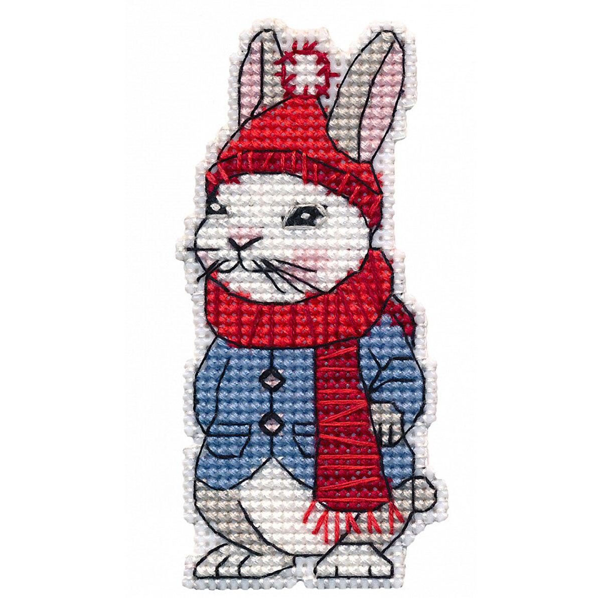 Набор для вышивания нитками Овен, магнит на пластиковой канве Заяц 4.5х9.5 см