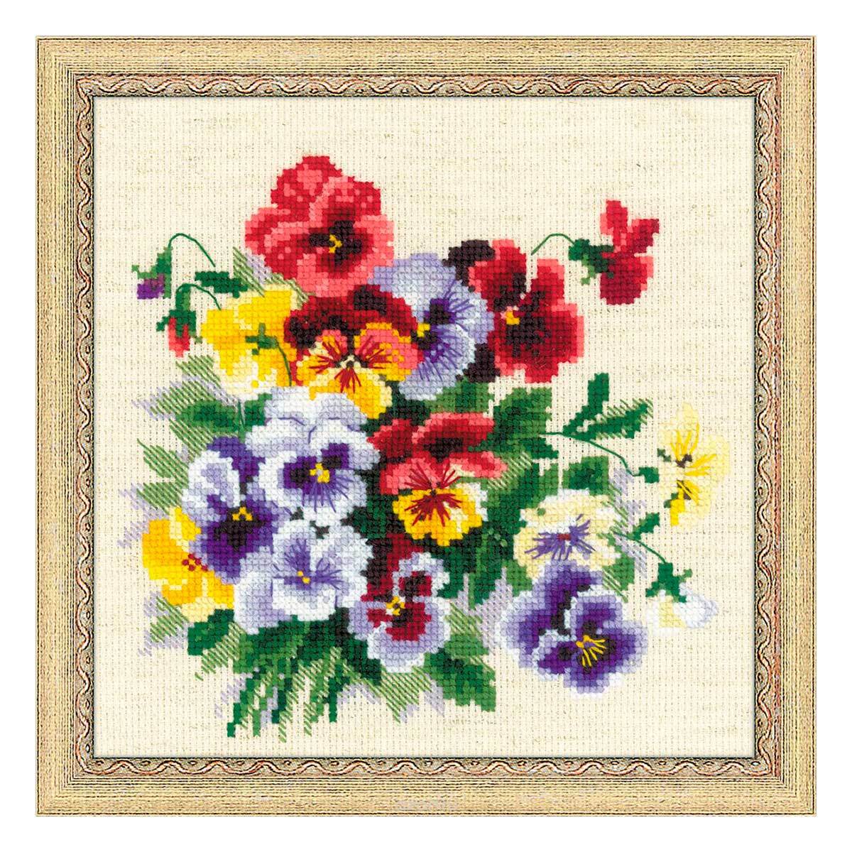 Набор для вышивания крестом Риолис, Пестрые анютки, 20*20 см арт. 1516