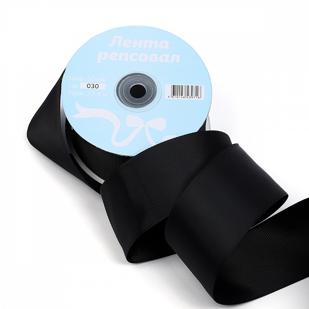 Лента репсовая (в рубчик) 50.0 мм, 030 (176) черный, уп. 27,4м