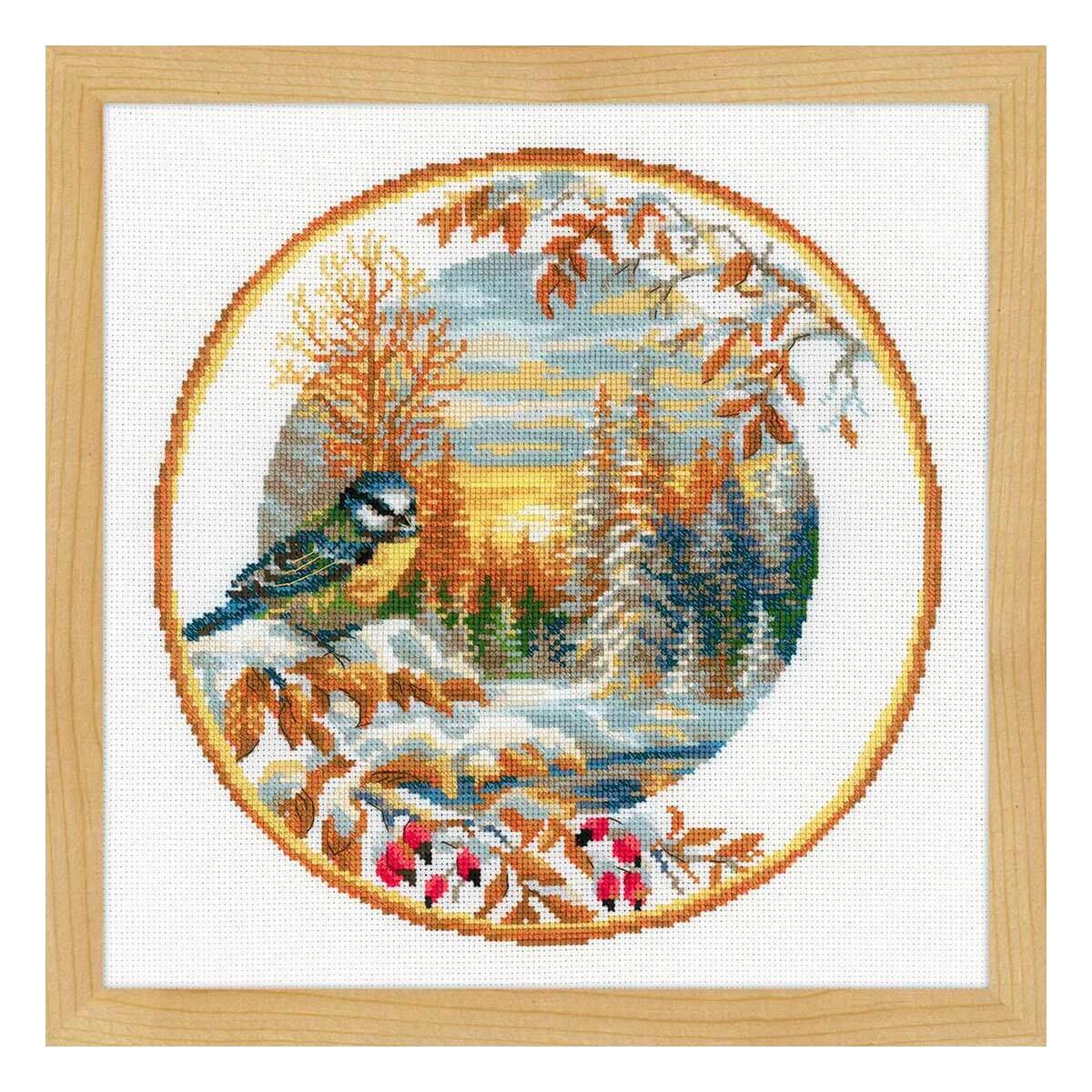 Набор для вышивания крестом Риолис, Тарелка с синицей30*30см арт. 1692
