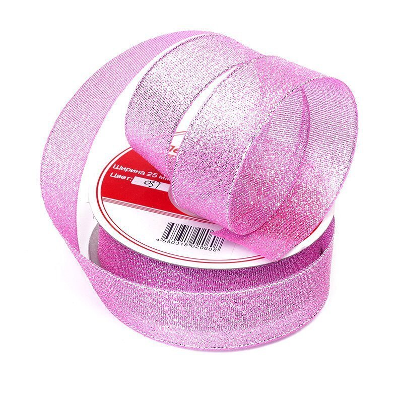 Лента с люрексом 25 мм, 037 св.розовый, уп. 22,85 м