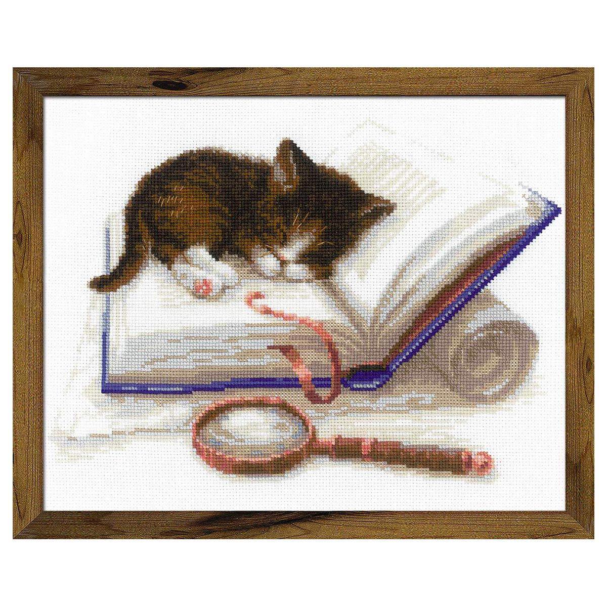 Набор для вышивания крестом Риолис, Котенок на книжке 30*24см арт. 1725