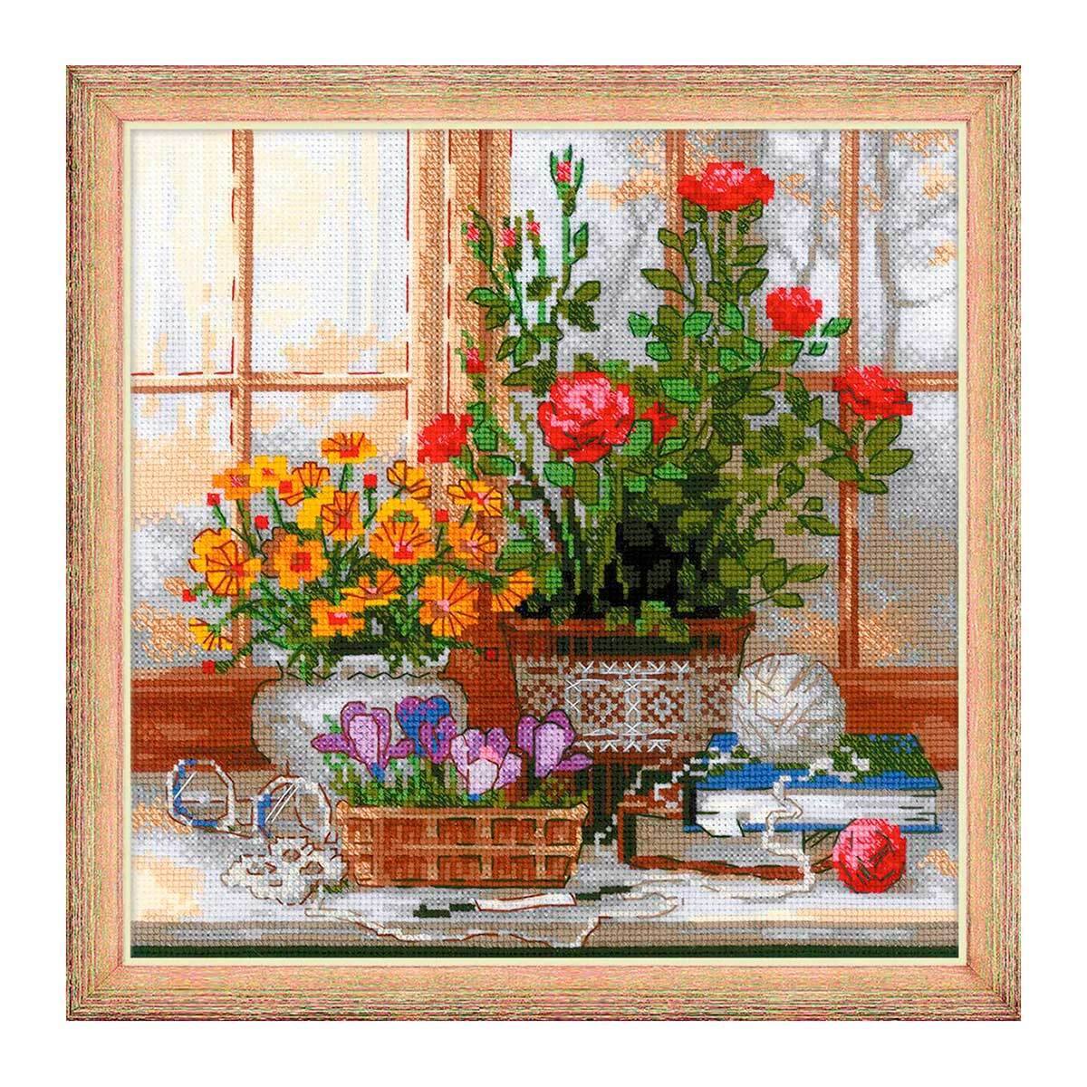 Набор для вышивания нитками Риолис, Крокусы на окошке 21х 27х0.3см