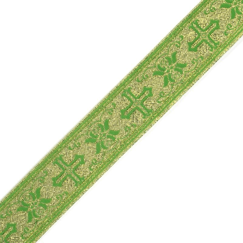 Лента (тесьма) жаккардовая 33.0 мм / 10±0.5 метров, 00285, зеленый/золото