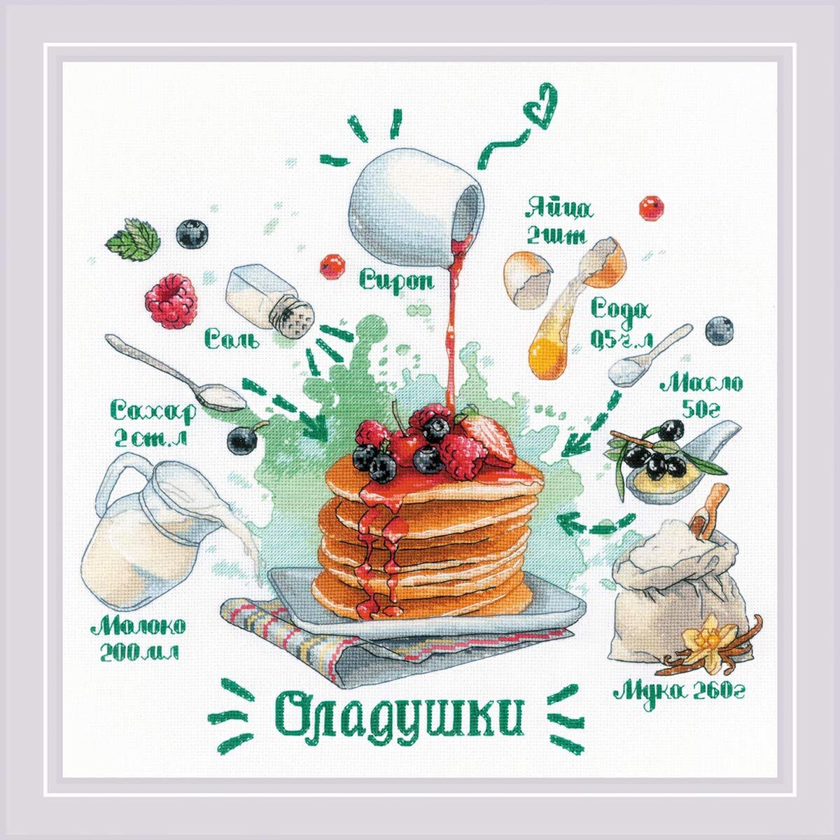 Набор для вышивания крестом Риолис, Рецепт. Оладушки 30*30см арт. 1919
