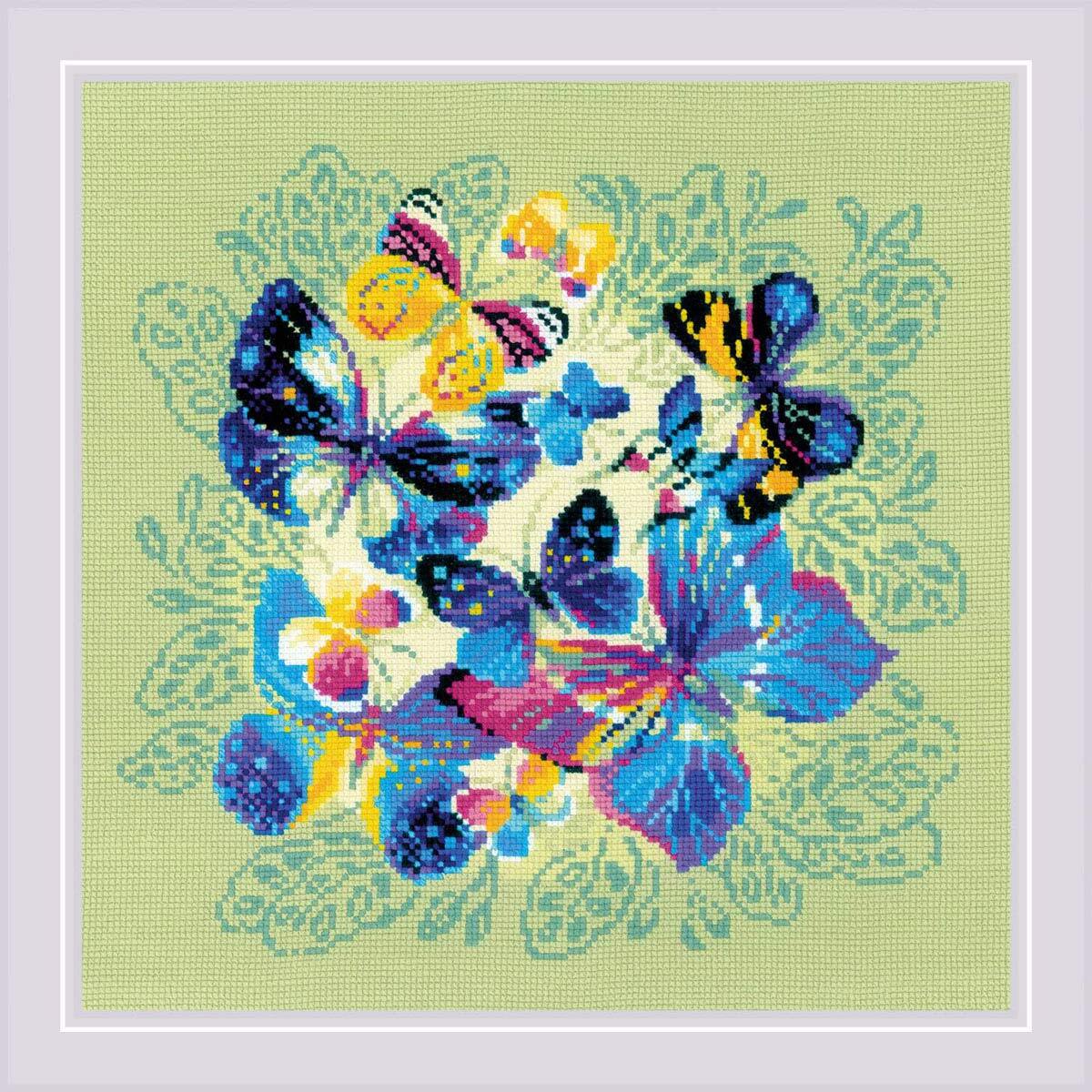 Набор для вышивания крестом Риолис, Панно/подушка Яркие бабочки 40*40см арт. 1958
