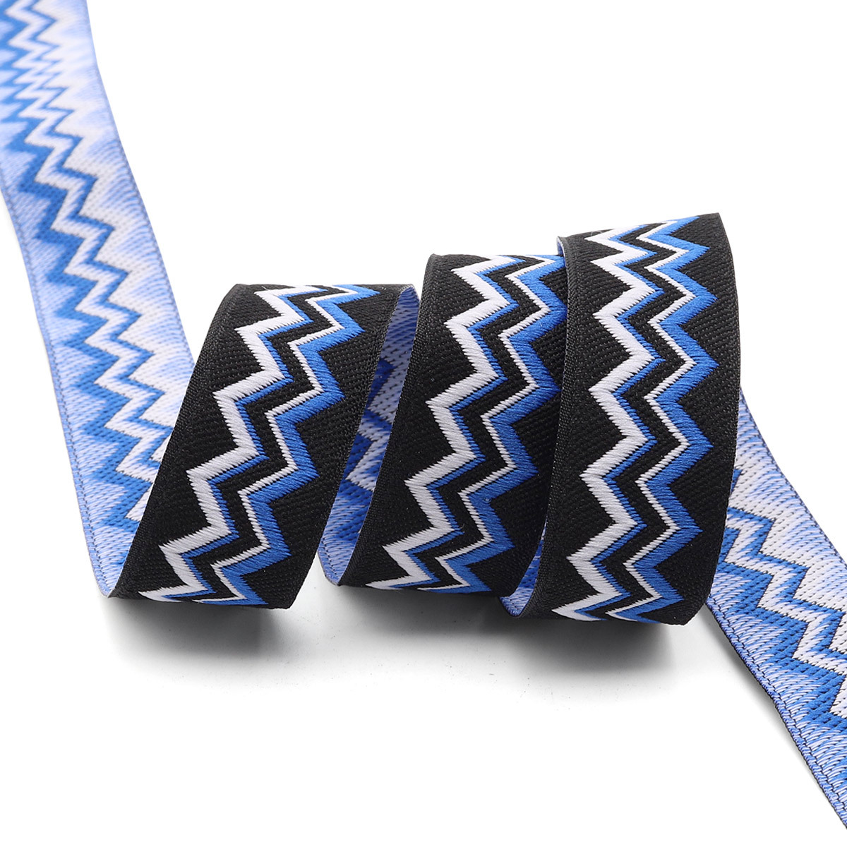 Лента (тесьма) жаккардовая 20.0 мм / 10±0.5 метров, Зигзаг 20278 V2 черный/синий