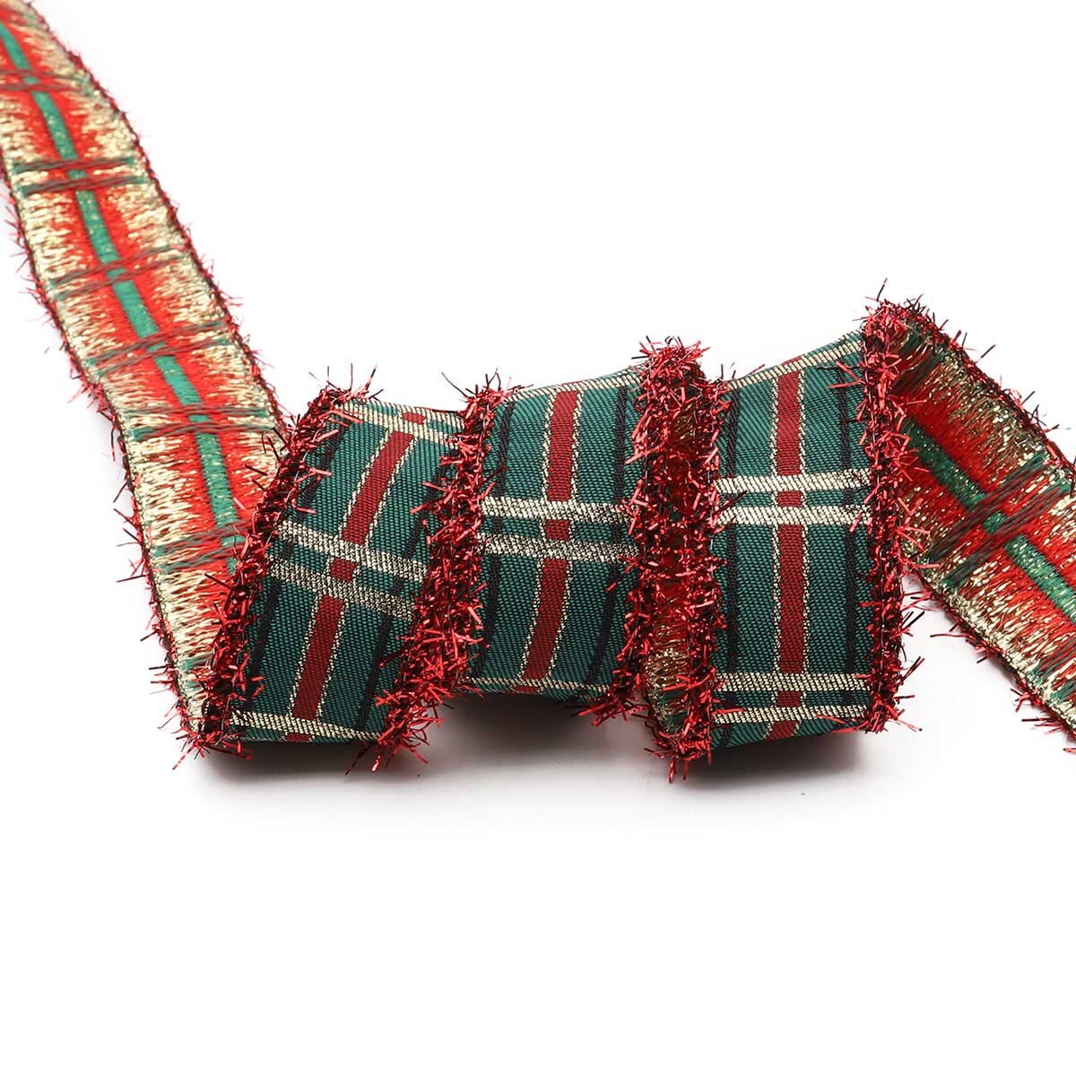 Лента (тесьма) жаккардовая 25.0 мм / 10±0.5 метров, Тартан с люрексом, 25136 SKL красный