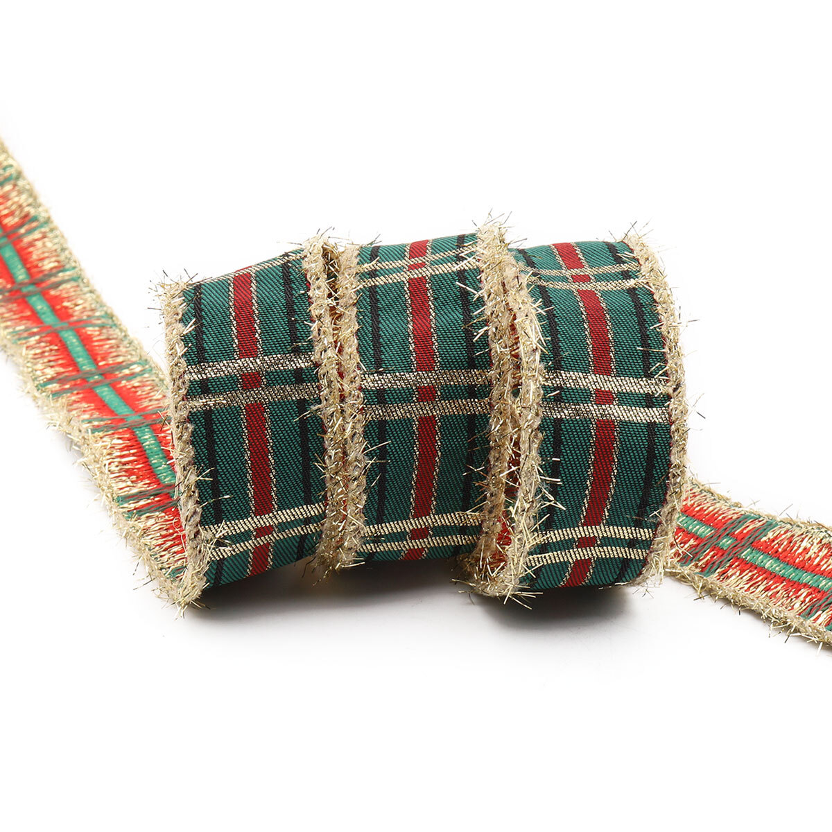 Лента (тесьма) жаккардовая 25.0 мм / 10±0.5 метров, Тартан с люрексом, 25136 SKL золото