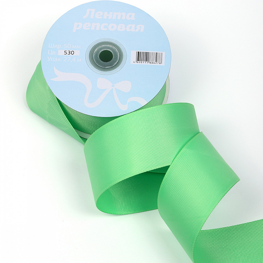 Лента репсовая (в рубчик) 50.0 мм, 530 (114) пастел.мятный, уп. 27,4м