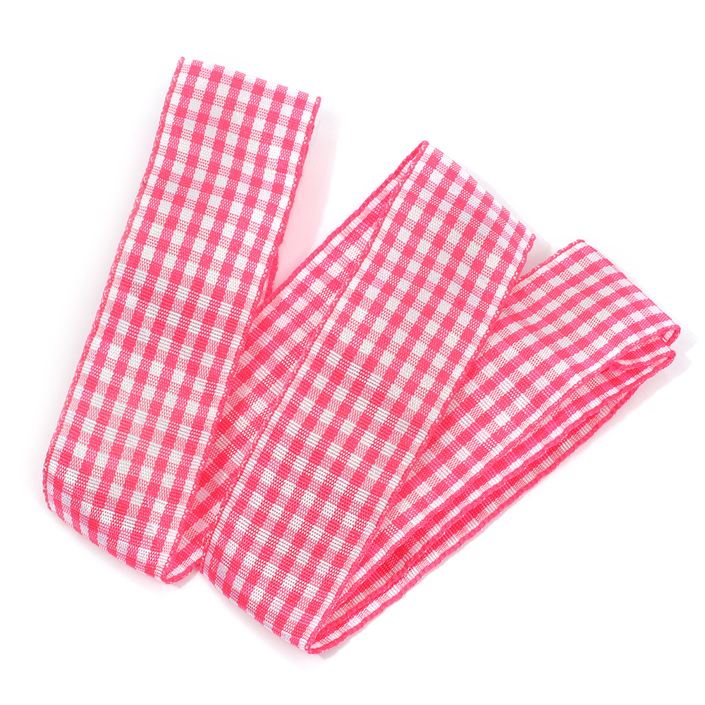 Лента тканевая с рисунком Клетка 25 мм, розовый/белый, уп. 20 м