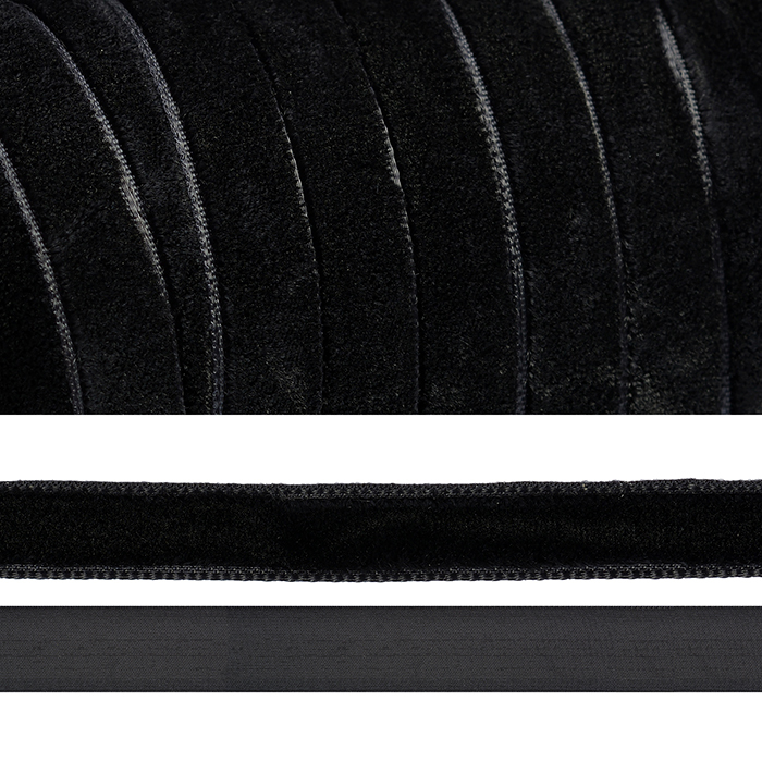 Лента бархатная (тесьма) 10.0 мм / 20±1 метров, нейлон, черный