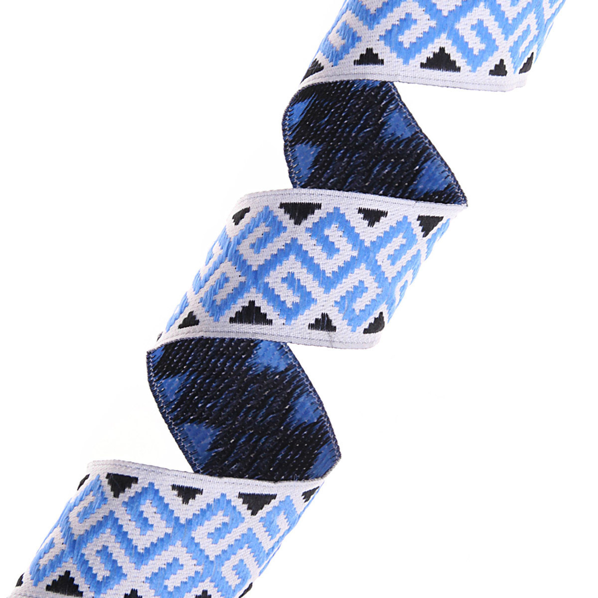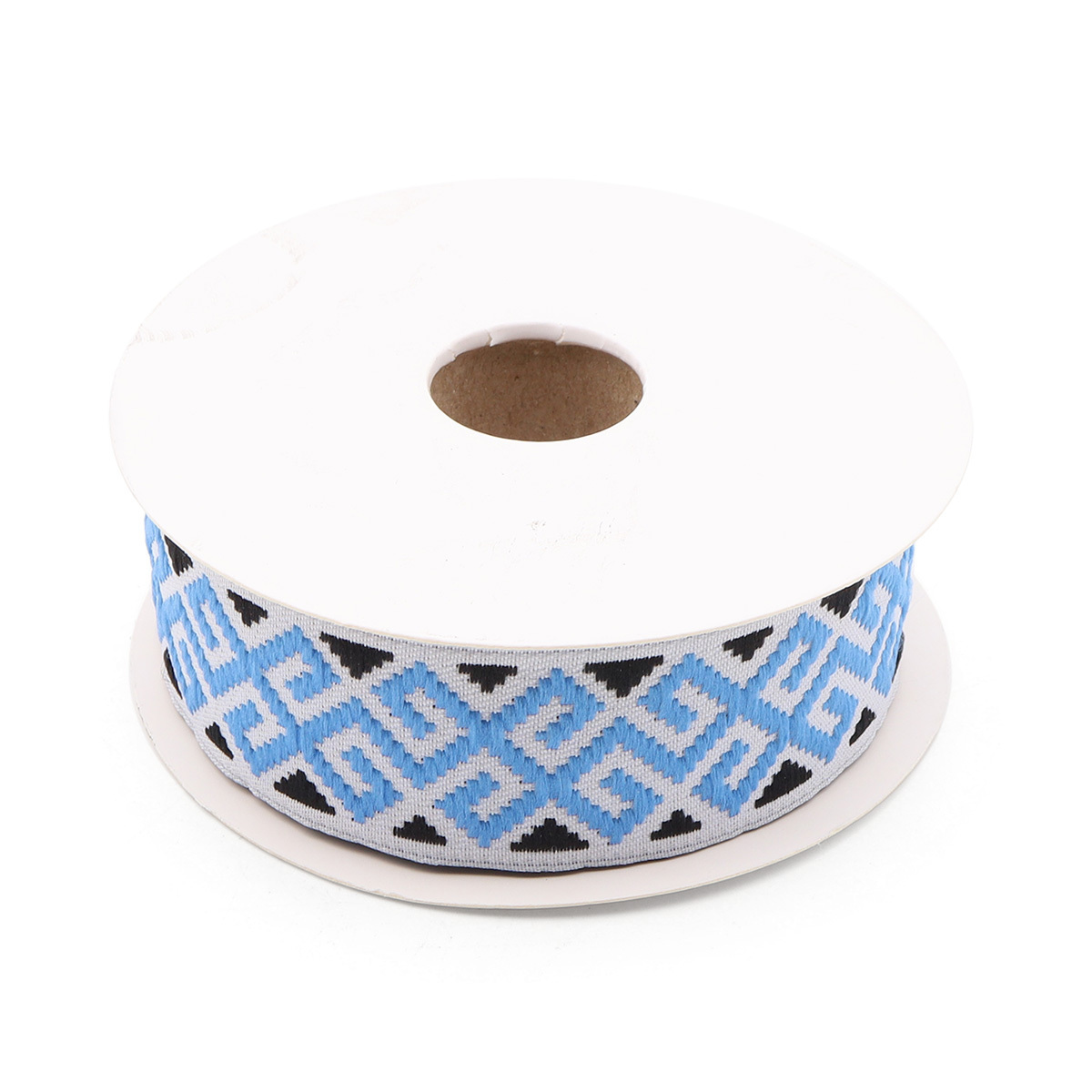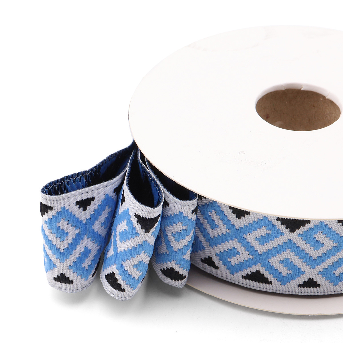 Жаккардовая лента имеет объемный плетеный узор из цветных нитей, напоминающий вышивку. Поскольку рисунок образуется переплетением нитей, а не печатается на готовой ткани, он не поблекнет и не сотрется. Применение: – украшение домашнего текстиля – покрывал, наволочек, мебельных чехлов; – отделка и ремонт предметов одежды, особенно одежды для выступлений; – такие ленты можно пришивать как ручки для сумок и рюкзаков, подвязок, подтяжек и ремней. Чтобы пришить жаккардовую ленту к материалу, используйте простую машинную строчку. Материал: 100% полиэстер. Размер: ширина 28 мм, длина 10 м.