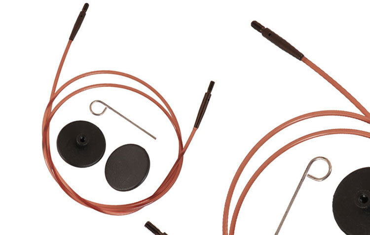 Тросики (лески) изготовлены из упругого и гибкого материала, который обеспечивает гладкое соединение без перегибов и скручиваний. Длинное соединение с резьбой гарантирует гладкое и прочное соединение лески и спицы. Для затягивания соединения предназначен небольшой ключик, который вставляется в специальное отверстие и затягивается для прочного соединения. Торцевые заглушки легко надеваются на леску и обеспечивают безопасность вязания. Упаковка: Набор из 1 лески, 2 торцевых заглушек и 1 ключа