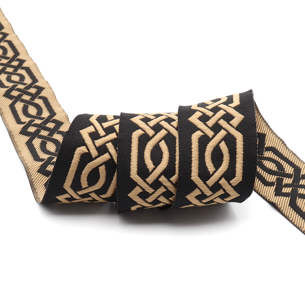 Лента (тесьма) жаккардовая 35.0 мм / 10±0.5 метров, бордюр Кельтский орнамент, 35272 V10 черный/золото