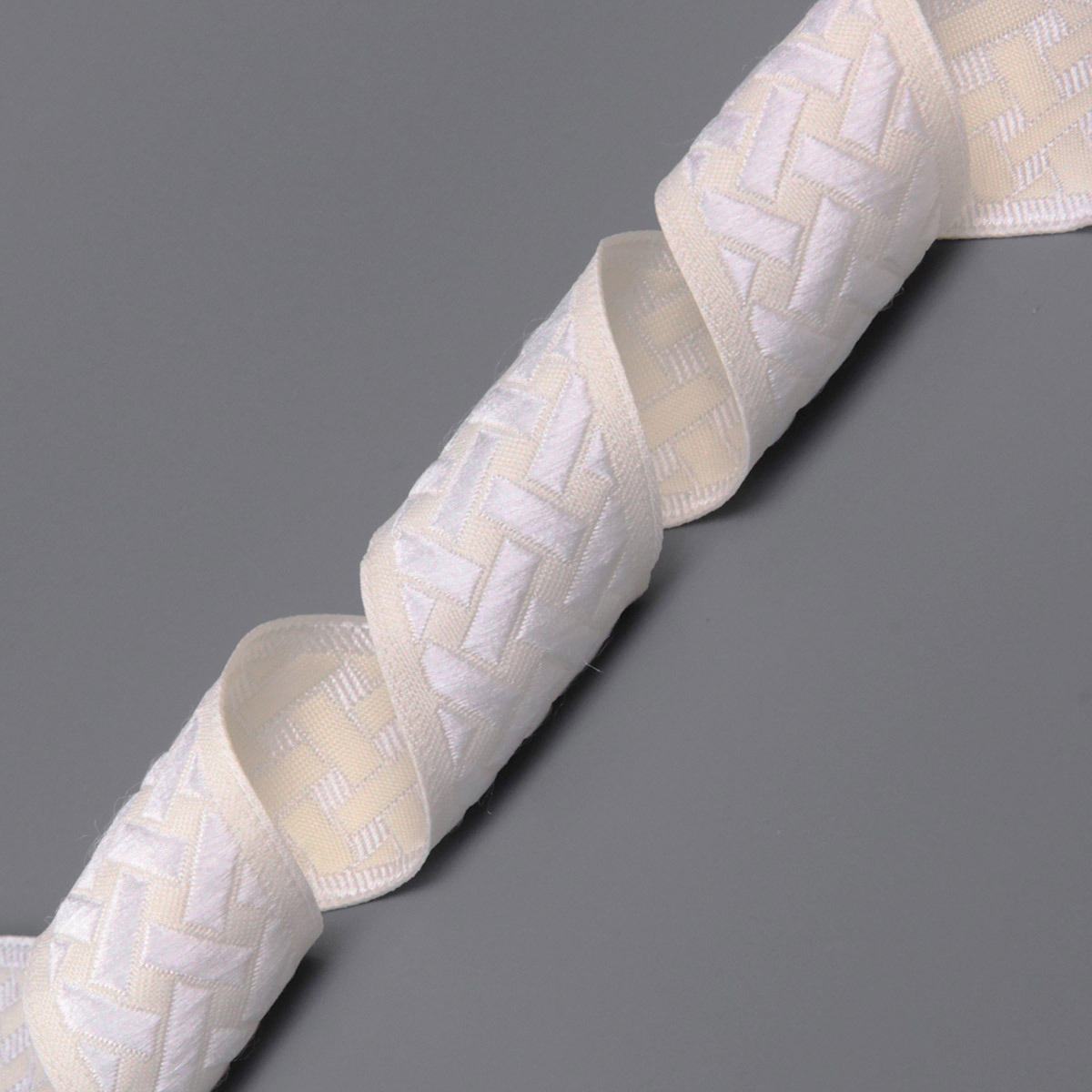 Лента (тесьма) жаккардовая 35.0 мм / 10±0.5 метров, бордюр Плетеный орнамент 35274 V1 белый
