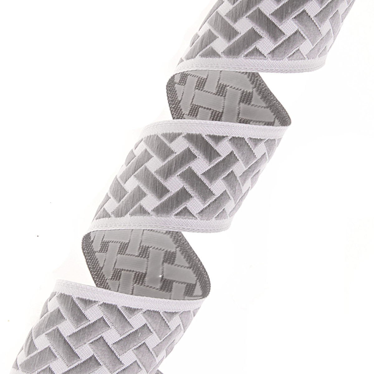 Лента (тесьма) жаккардовая 35.0 мм / 10±0.5 метров, бордюр Плетеный орнамент 35274 V4 серый