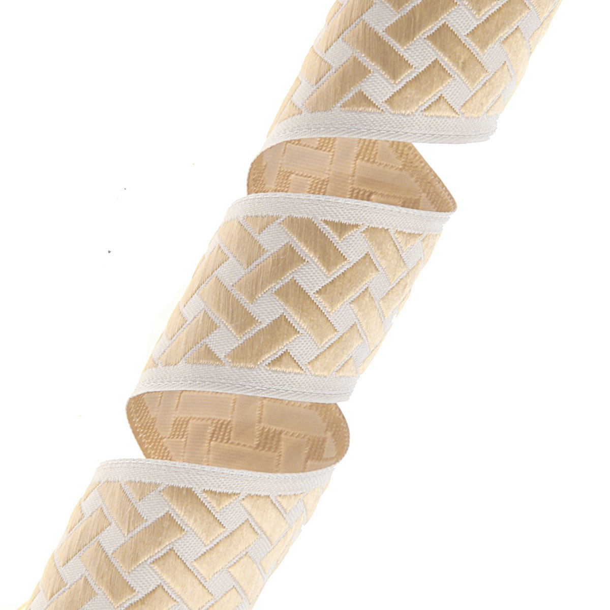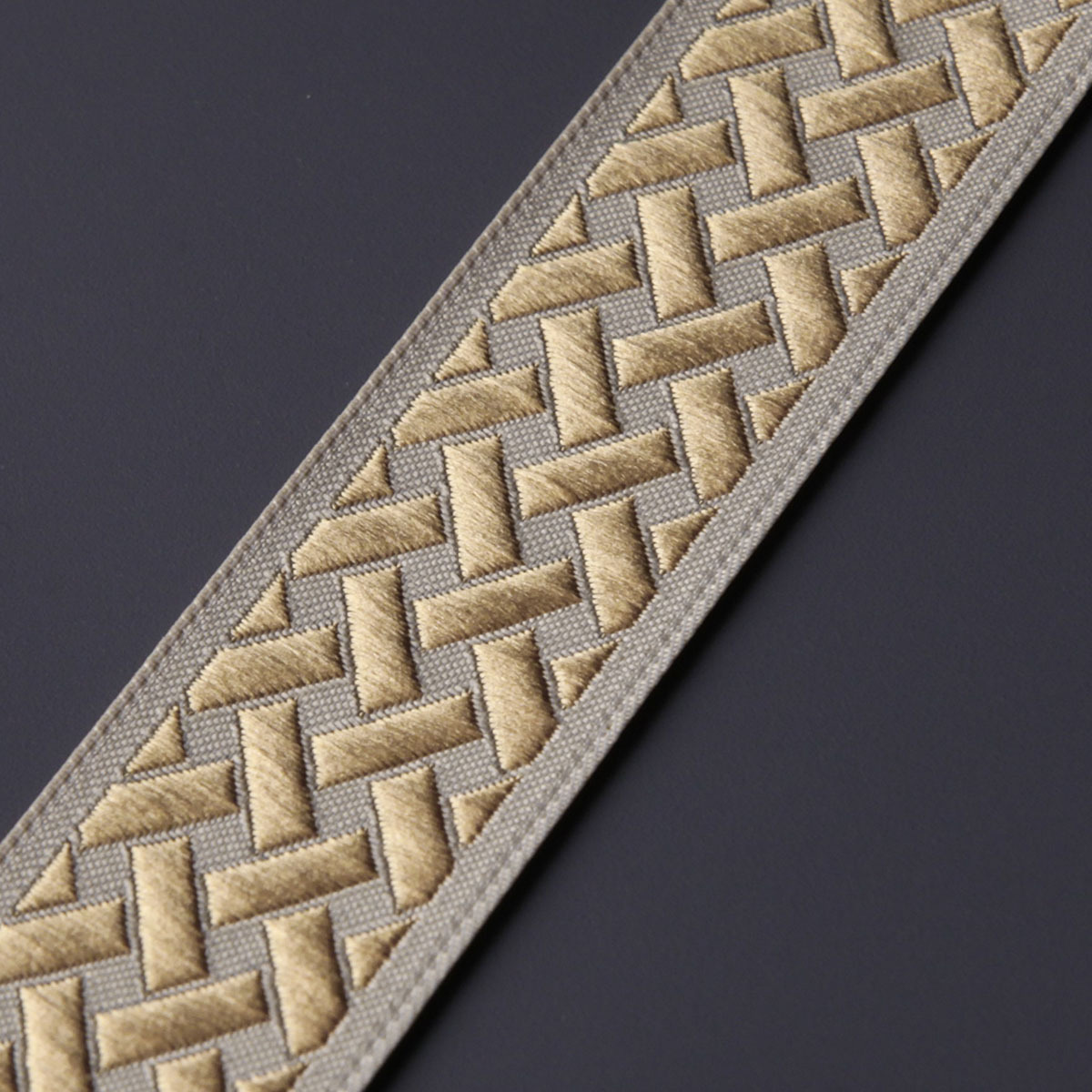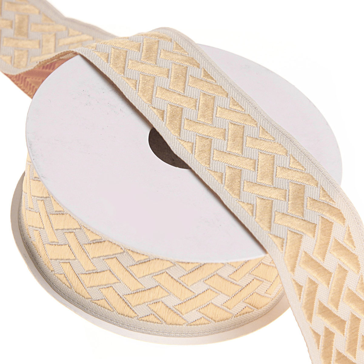 Лента (тесьма) жаккардовая 35.0 мм / 10±0.5 метров, бордюр Плетеный орнамент 35274 V7 золото