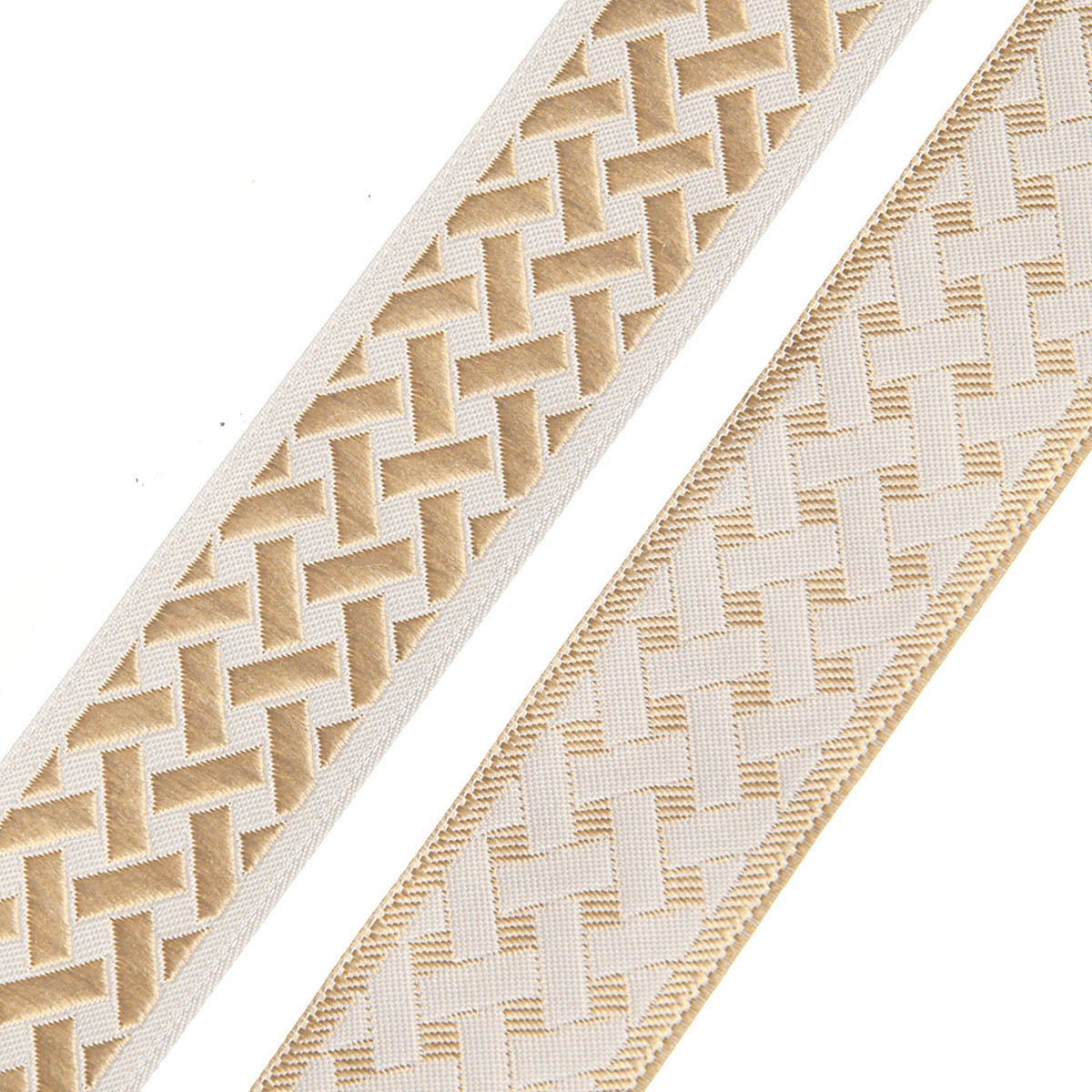 Жаккардовая лента имеет объемный плетеный узор, напоминающий вышивку. Поскольку рисунок образуется переплетением нитей, а не наносится на готовую ткань, он не поблекнет и не сотрется. Применение: – украшение домашнего текстиля – покрывал, наволочек, мебельных чехлов; – отделка и ремонт предметов одежды, особенно одежды для выступлений; – такие ленты можно пришивать как ручки для сумок и рюкзаков, подвязок, подтяжек и ремней. Чтобы пришить жаккардовую ленту к материалу, используйте простую машинную строчку. Материал: 100% полиэстера. Размер: ширина 35 мм, длина 10 м.