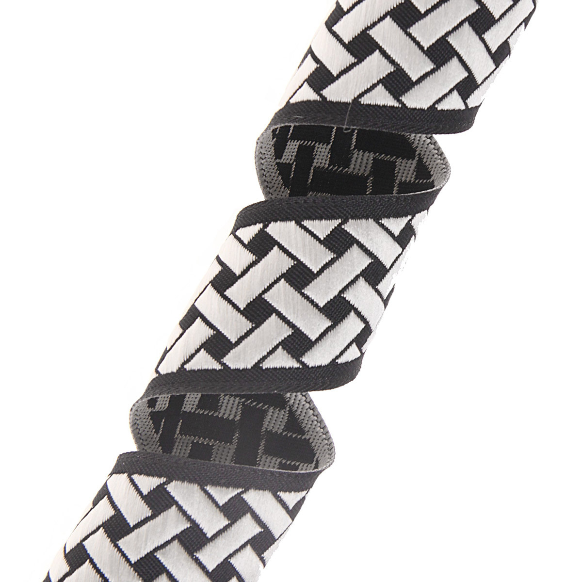 Лента (тесьма) жаккардовая 35.0 мм / 10±0.5 метров, бордюр Плетеный орнамент 35274 V9 черный/серебро