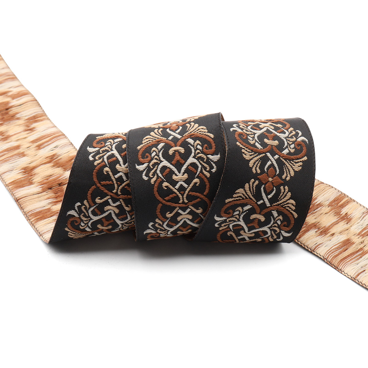 Лента (тесьма) жаккардовая 35.0 мм / 10±0.5 метров, Дамаск 35976 V2 черный/бежевый