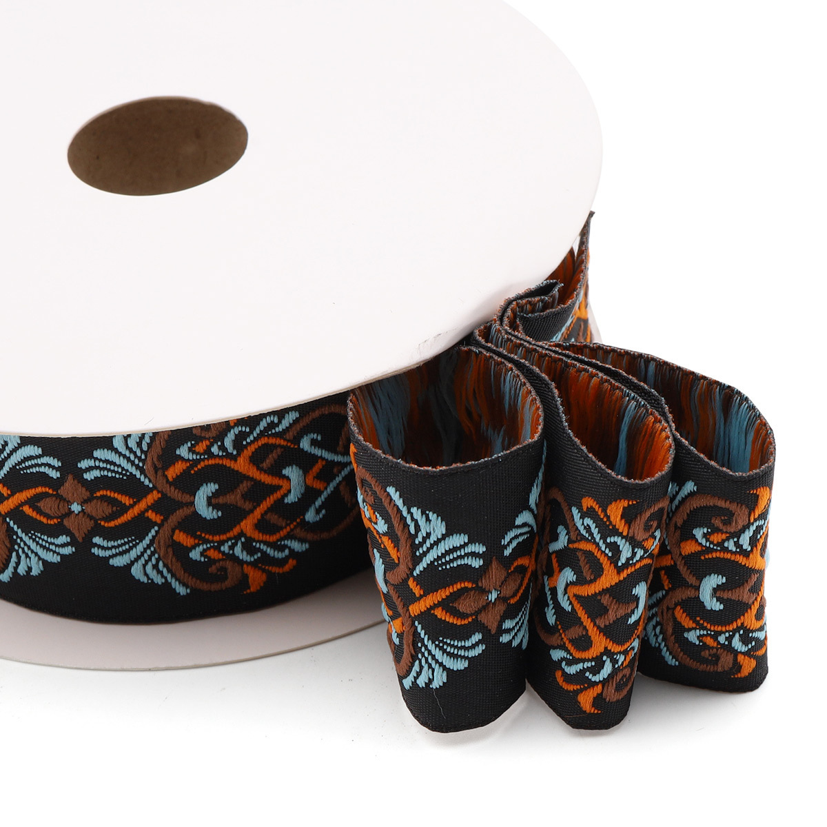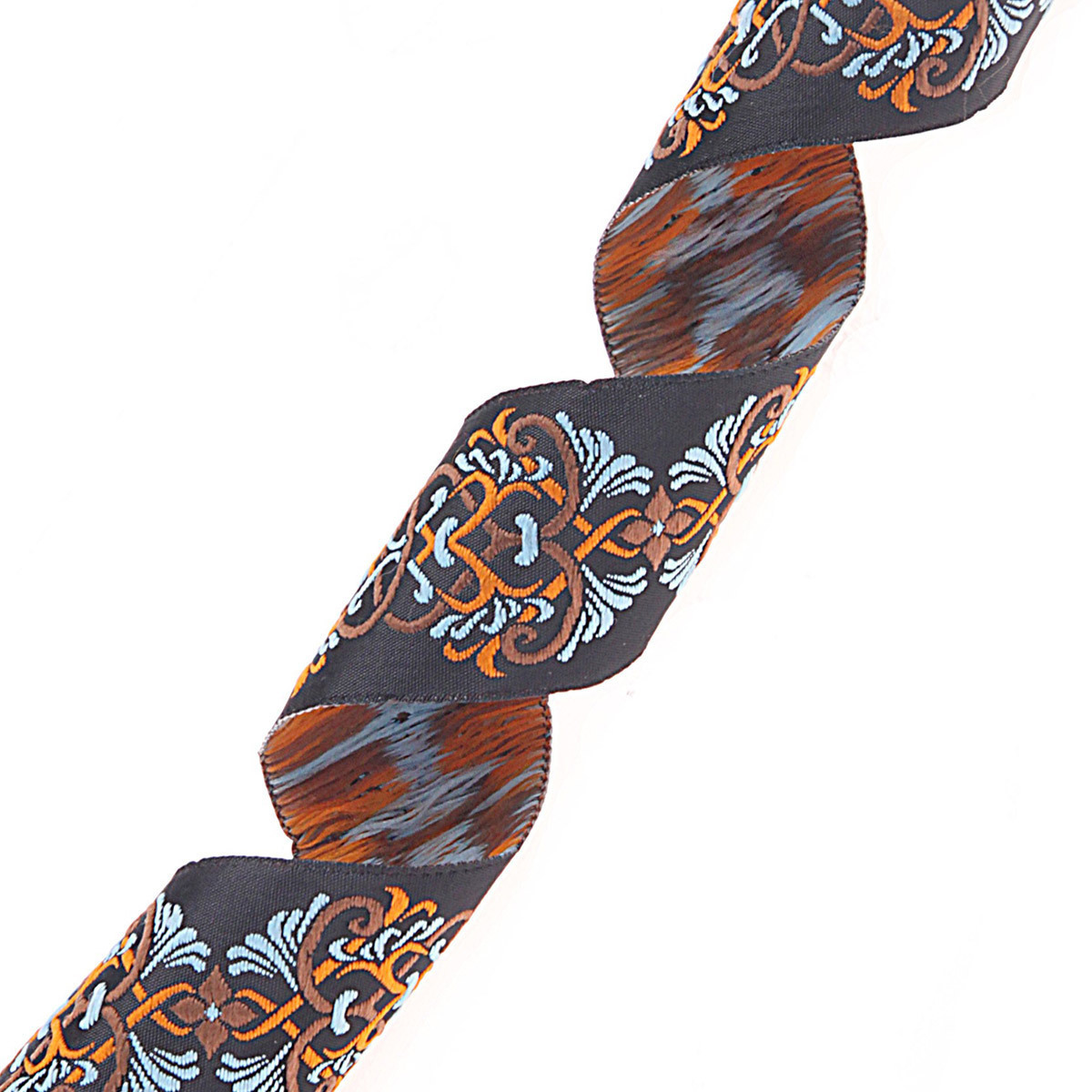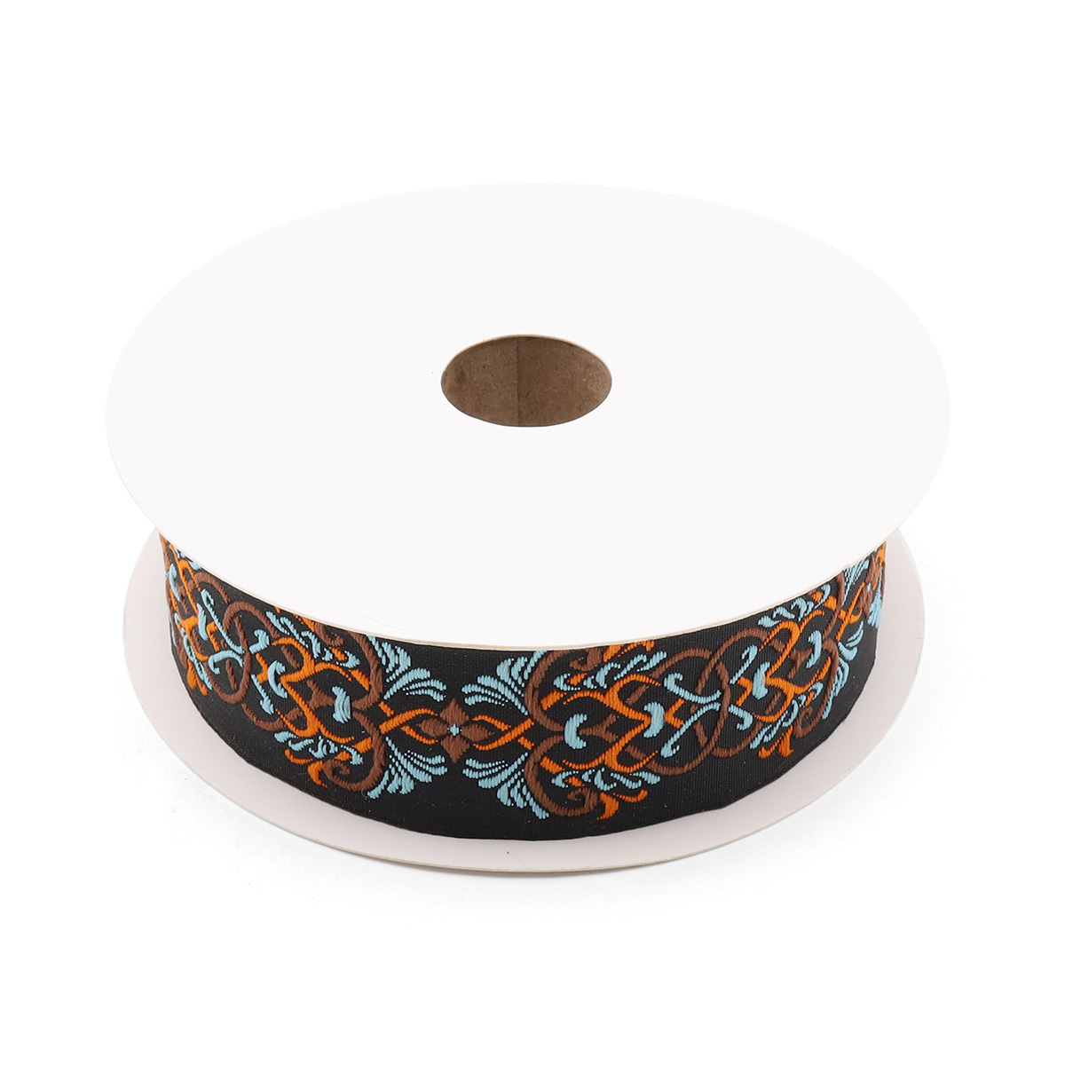 Лента (тесьма) жаккардовая 35.0 мм / 10±0.5 метров, Дамаск 35976 V3 черный/голубой