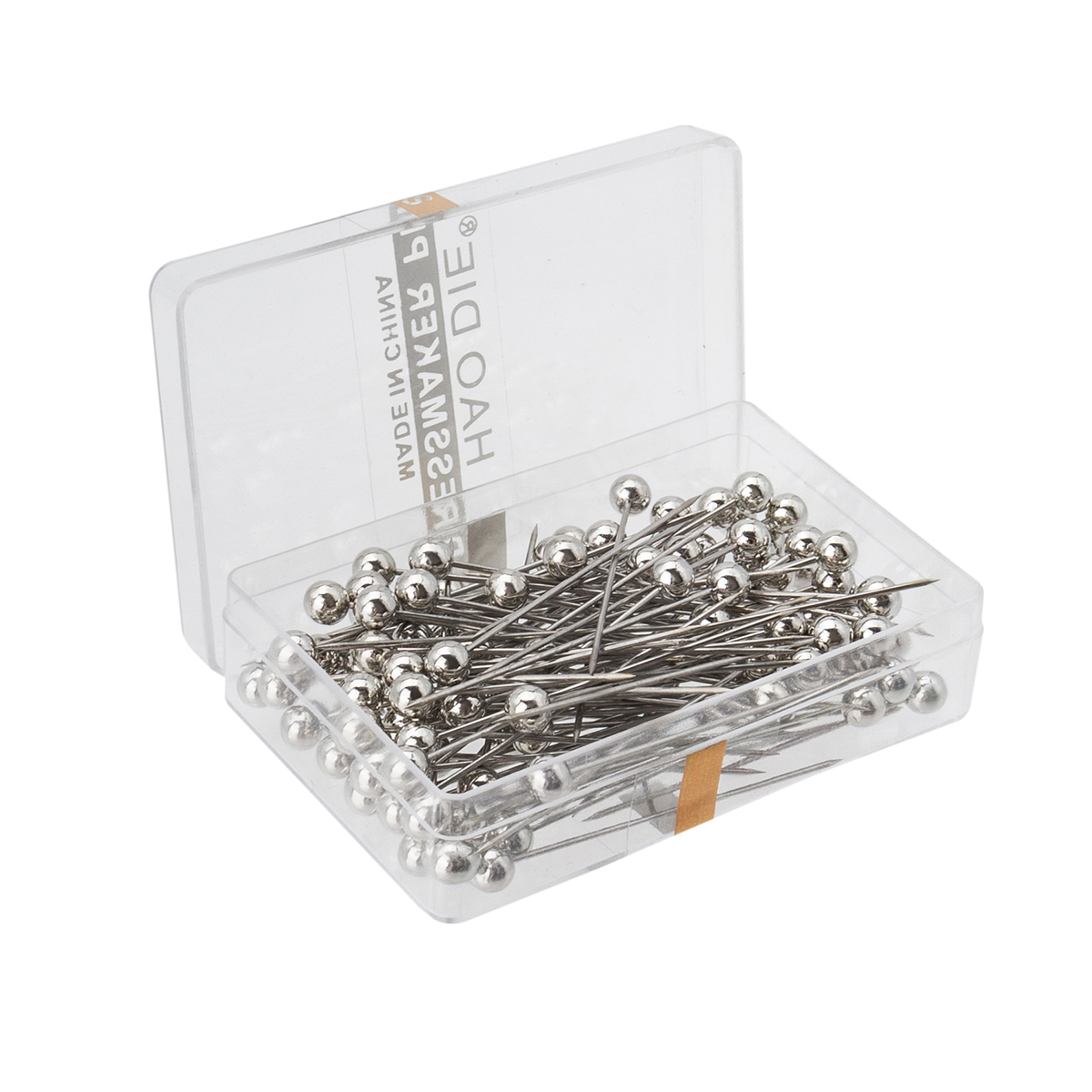 Булавки портновские 38 мм, с цветной головкой, в футляре, 100 шт, серебро, Hobby&Pro