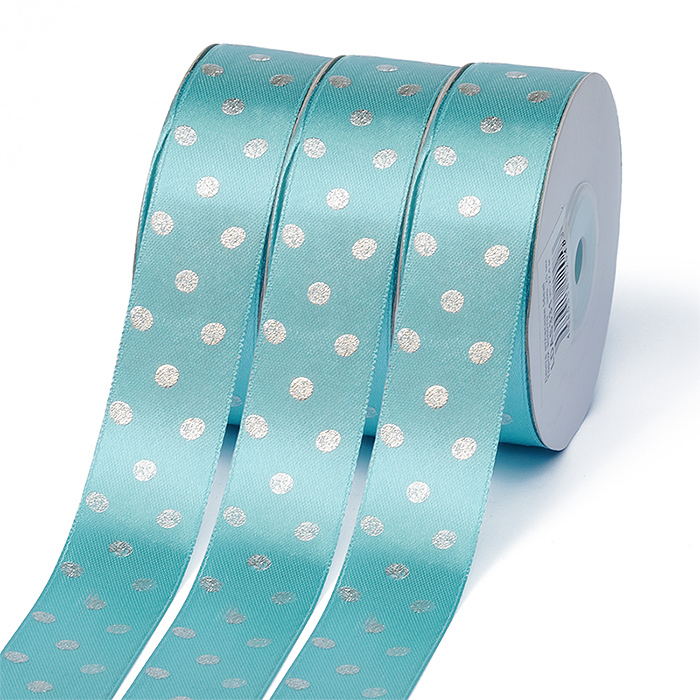 Лента атласная в горошек серебро 25.0 мм / 27.4±2 метров, 331 бирюзовый, Ideal