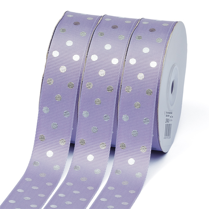 Лента репсовая (в рубчик) Горошек серебро, 25 мм, LDRS435, 435 сиреневый, уп. 27,4 м
